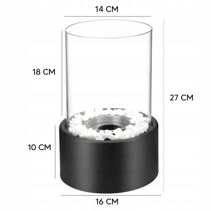 - W zestawie: Biokominek, kamienie ozdobne (2 kolory), wygaszacz płomienia